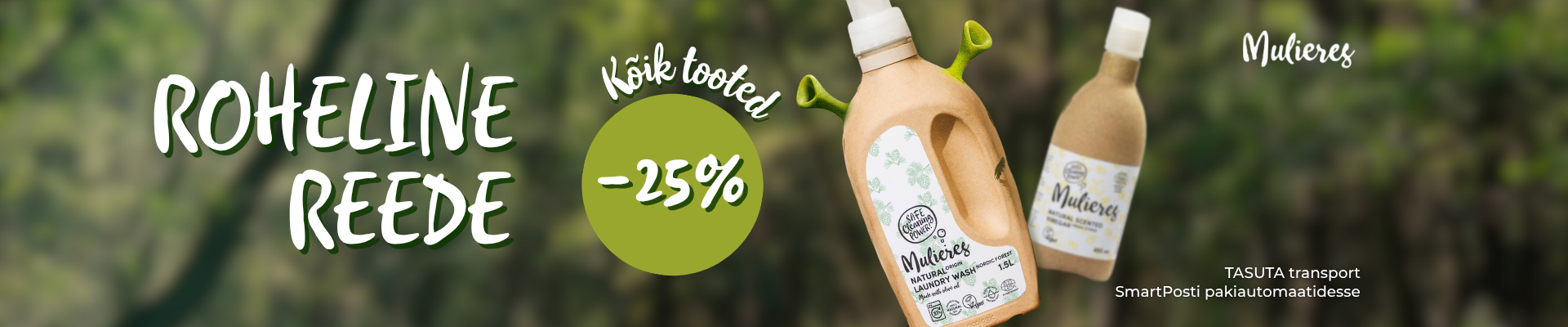 Märgist kasutame kõikidel toodetel, millega rõhutame, et toode on biolagunev, 99,97 % looduslikest koostisosadest ja parabeenivaba.