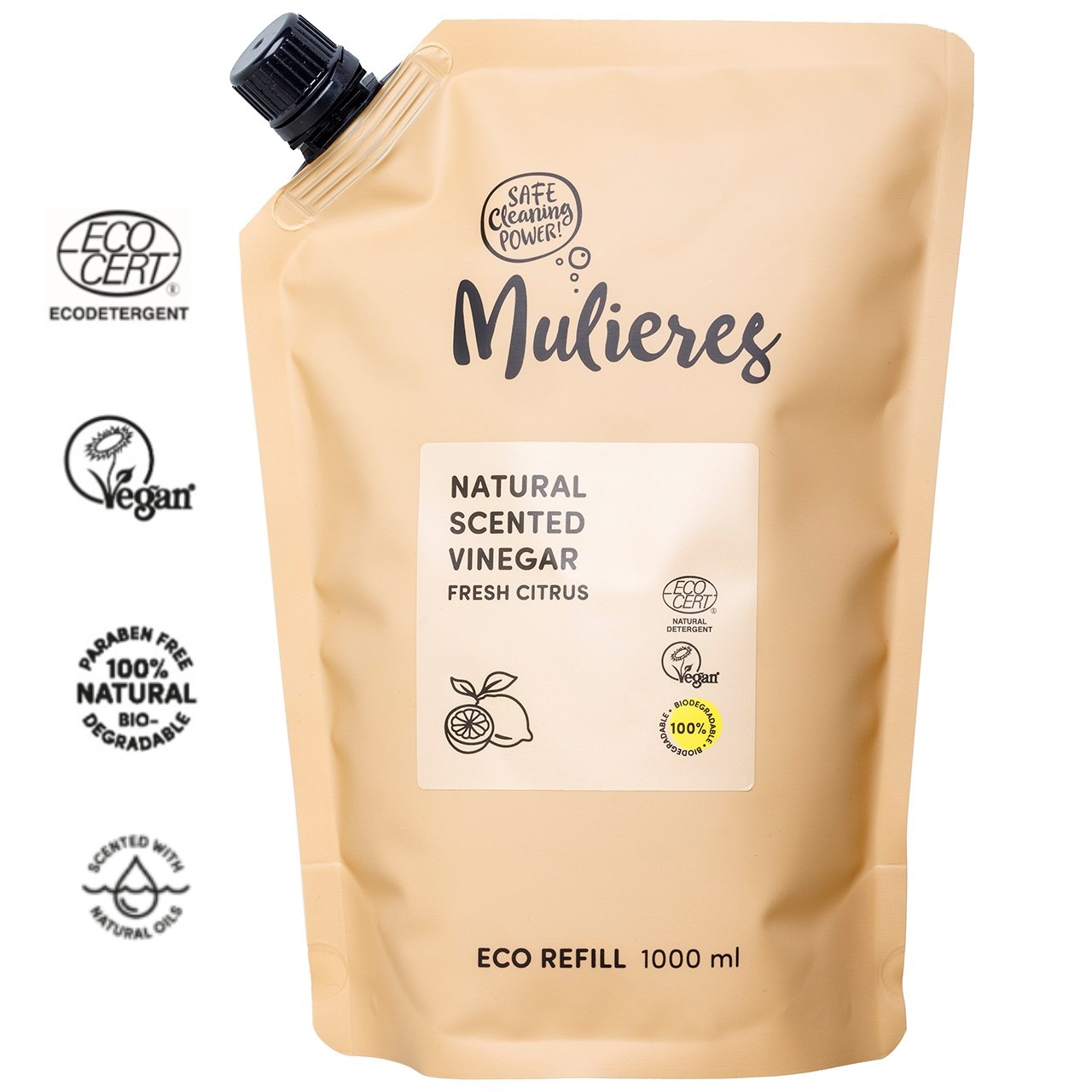 Mulieres looduslik lõhnastatud äädikas on 100% looduslikest koostisosadest valmistatud toode, millel on palju kasutusvõimalusi. Kasuta seda näiteks pesu pesemisel kanga pehmendamiseks, tekstiilesemete värskendamiseks, triikimise ajal riietele pihustamiseks või akende pesemiseks ja katlakivi eemaldamiseks. Lisaks värskendab see igal pesukorral ka pesumasinat ning eemaldab sellelt katlakivi, bakterid ja pesuvahendi jäägid. Enne kasutamist raputada!